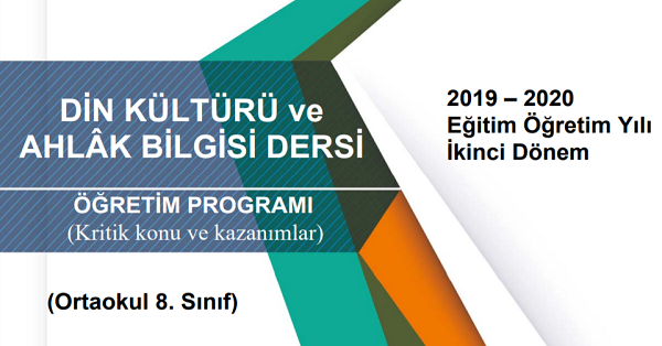 Bakanlığın hazırladığı 8.Sınıf Din Kültürü ve Ahlak Bilgisi Telafi Programı, Konu ve Kazanımları sitemize eklenmiştir. PDF dosyayı indirebilirsiniz..
