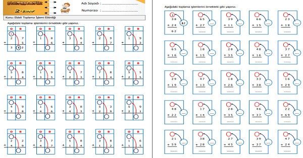 2.Sınıf Matematik Eldeli Toplama İşlemi Etkinliği 6