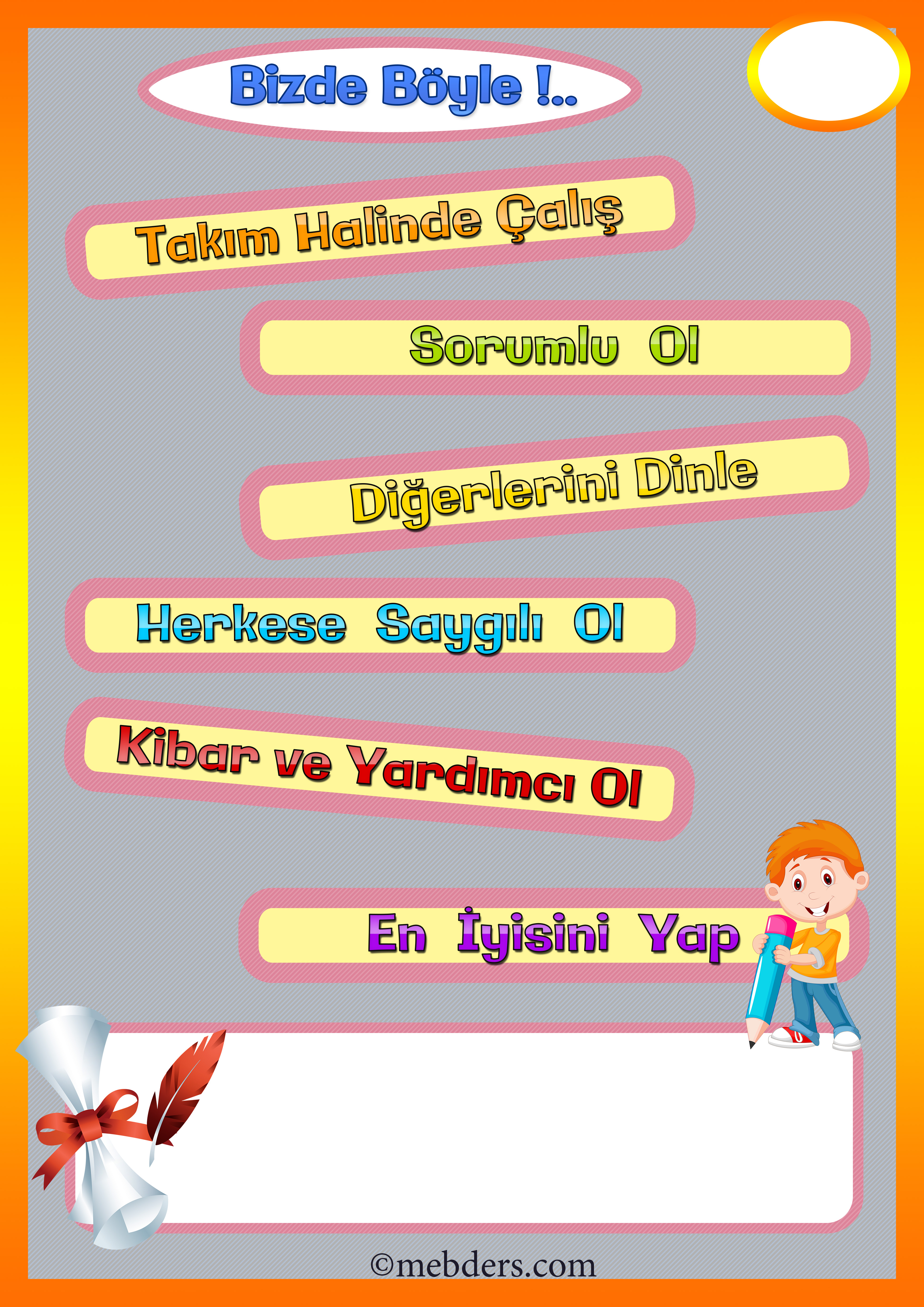 İmzalı Sınıf Kuralları Afişi sitemize eklenmiştir. İsteğe göre a3 veya a4 formatında çıktı alabilirsiniz. Köşeye sınıfınızı yazabilir, alttaki alana öğrencilerinize imza attırabilirsiniz..