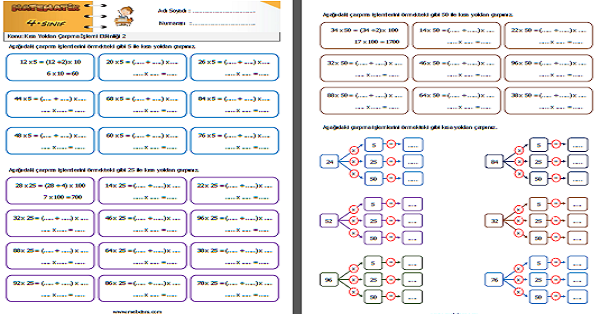 4.Sınıf Matematik Kısa Yoldan Çarpma İşlemi Etkinliği 2