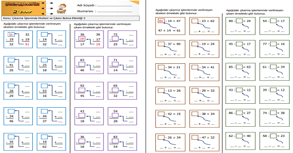 2.Sınıf Matematik Çıkarma İşleminde Eksileni ve Çıkanı Bulma Etkinliği 3