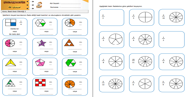 4.Sınıf Matematik Basit Kesir Etkinliği 2