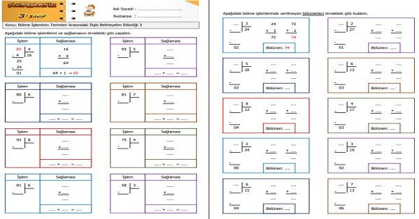 3.Sınıf Matematik Bölme İşleminin Terimleri Arasındaki İlişki Belirleyelim Etkinliği 3