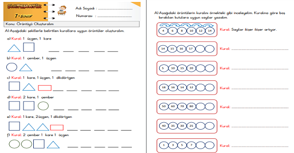 1.Sınıf Matematik Örüntü Etkinliği 2