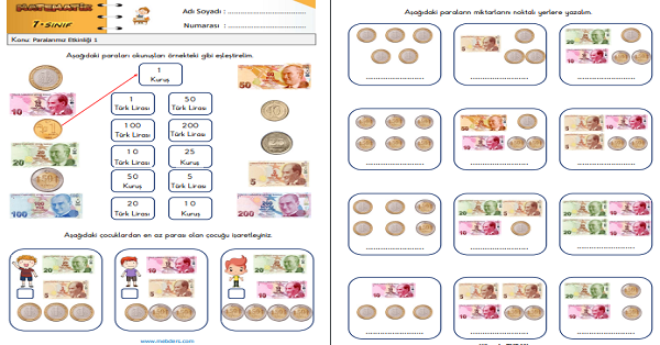 1.Sınıf Matematik Paralarımızı Tanıyalım Etkinliği 1
