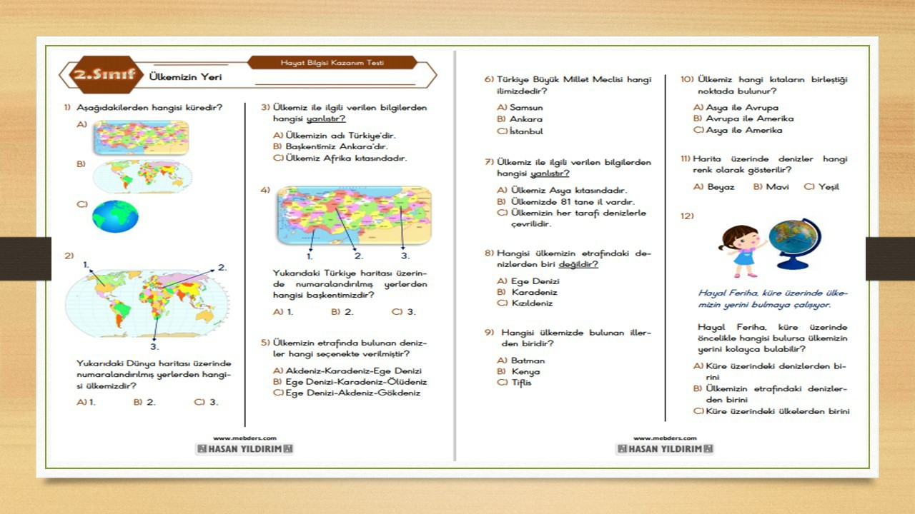 2.Sınıf Hayat Bilgisi Ülkemizin Yeri Testi