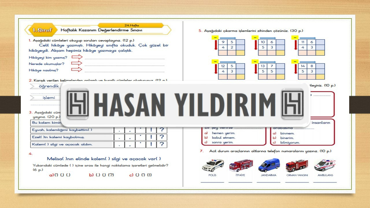 1.Sınıf Haftalık Değerlendirme Sınavı-24.Hafta(29 Mart-2 Nisan)
