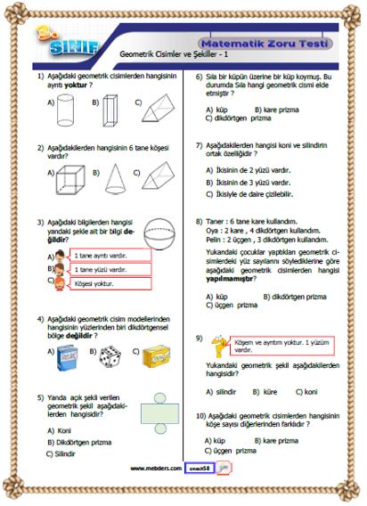 3. Sınıf Matematik Geometrik Cisimler ve Şekiller Kazanım Testi ( Zoru )