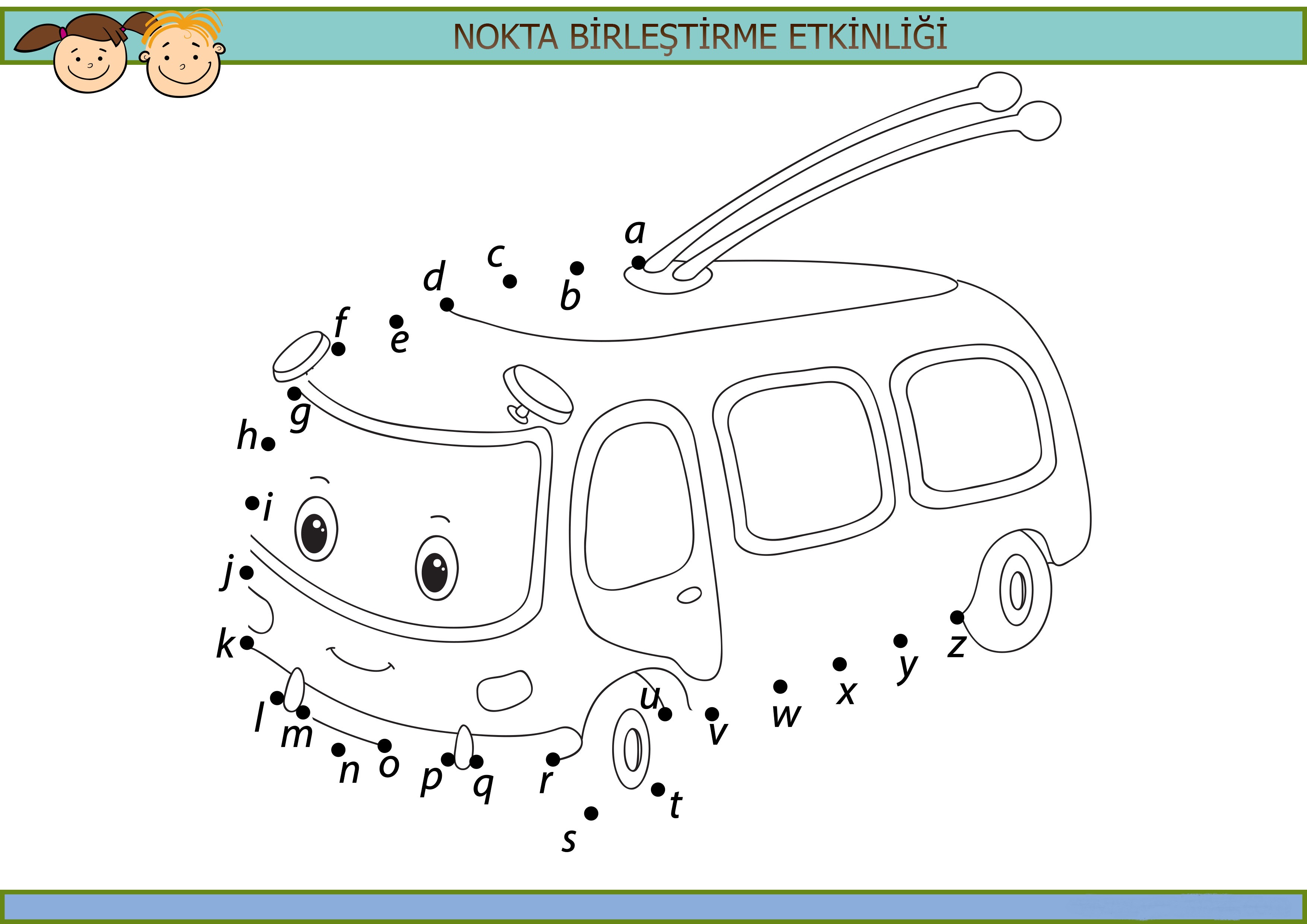 Sevimli minibüs harfli nokta birleştirme etkinliğidir. Orjinal boyut için dosyayı indiriniz.