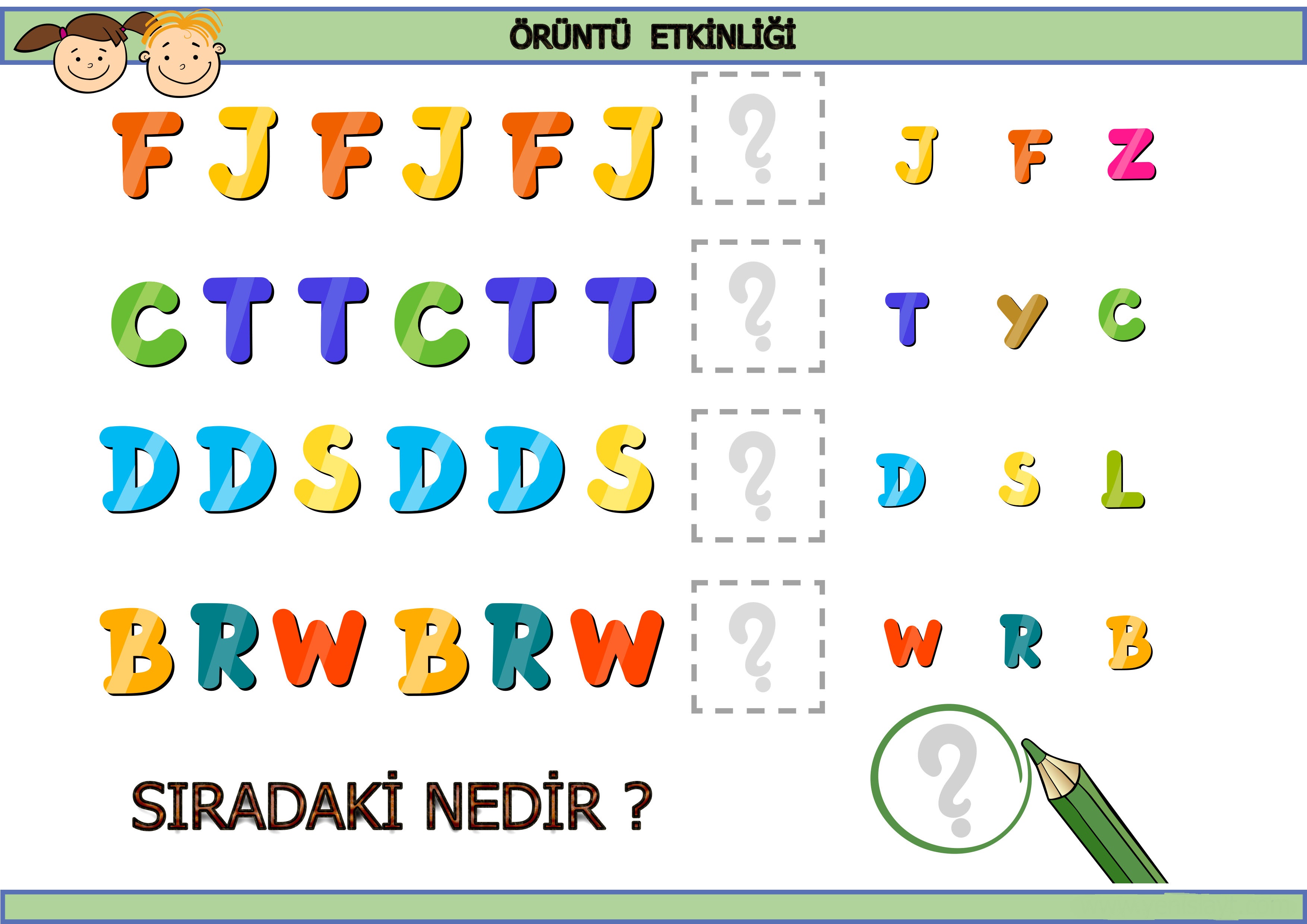 Harflerle eğlenceli örüntü etkinliği 2