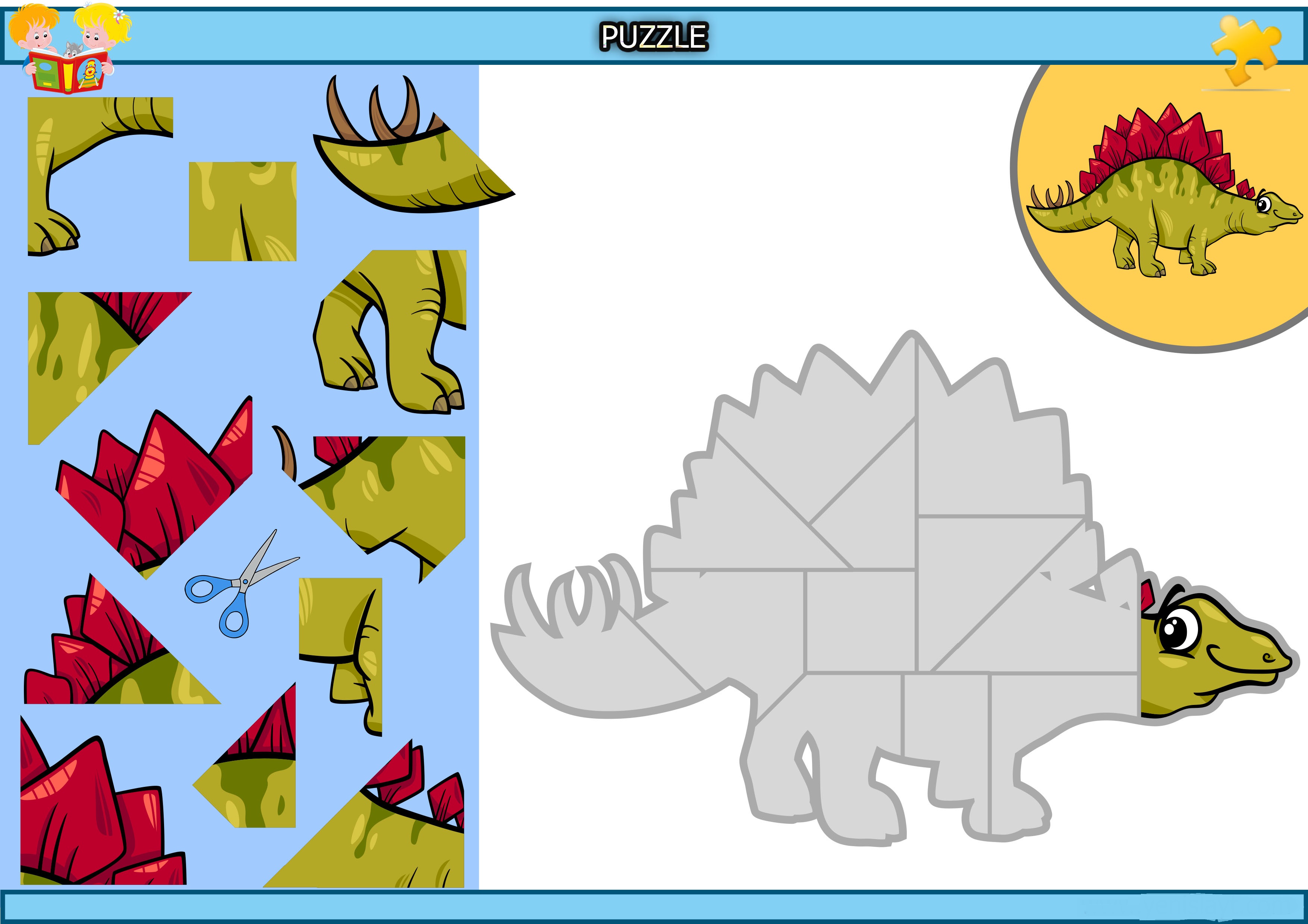 Kes yapıştır dinozor puzzle etkinliğidir.