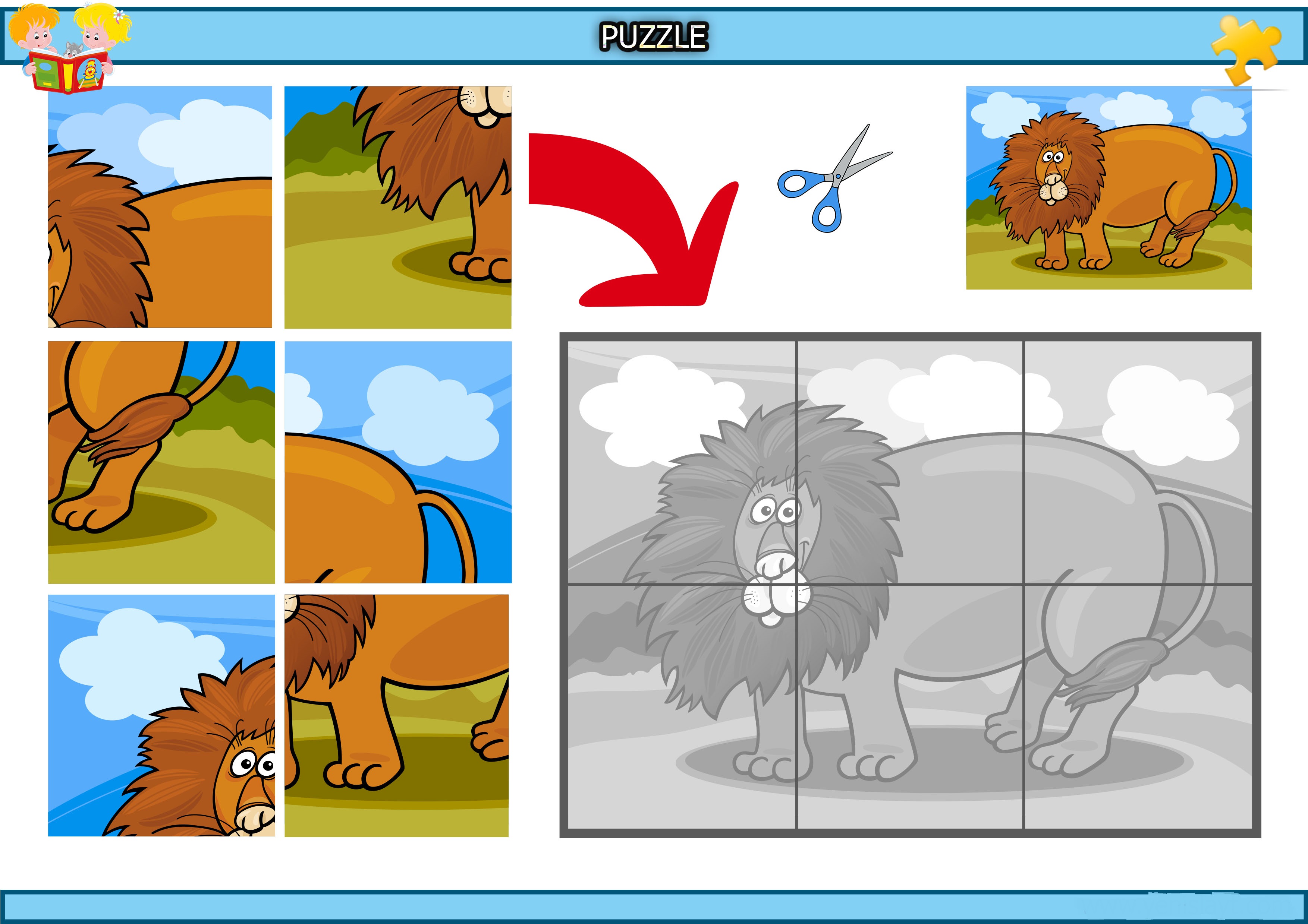 Kes yapıştır aslan puzzle etkinliğidir.