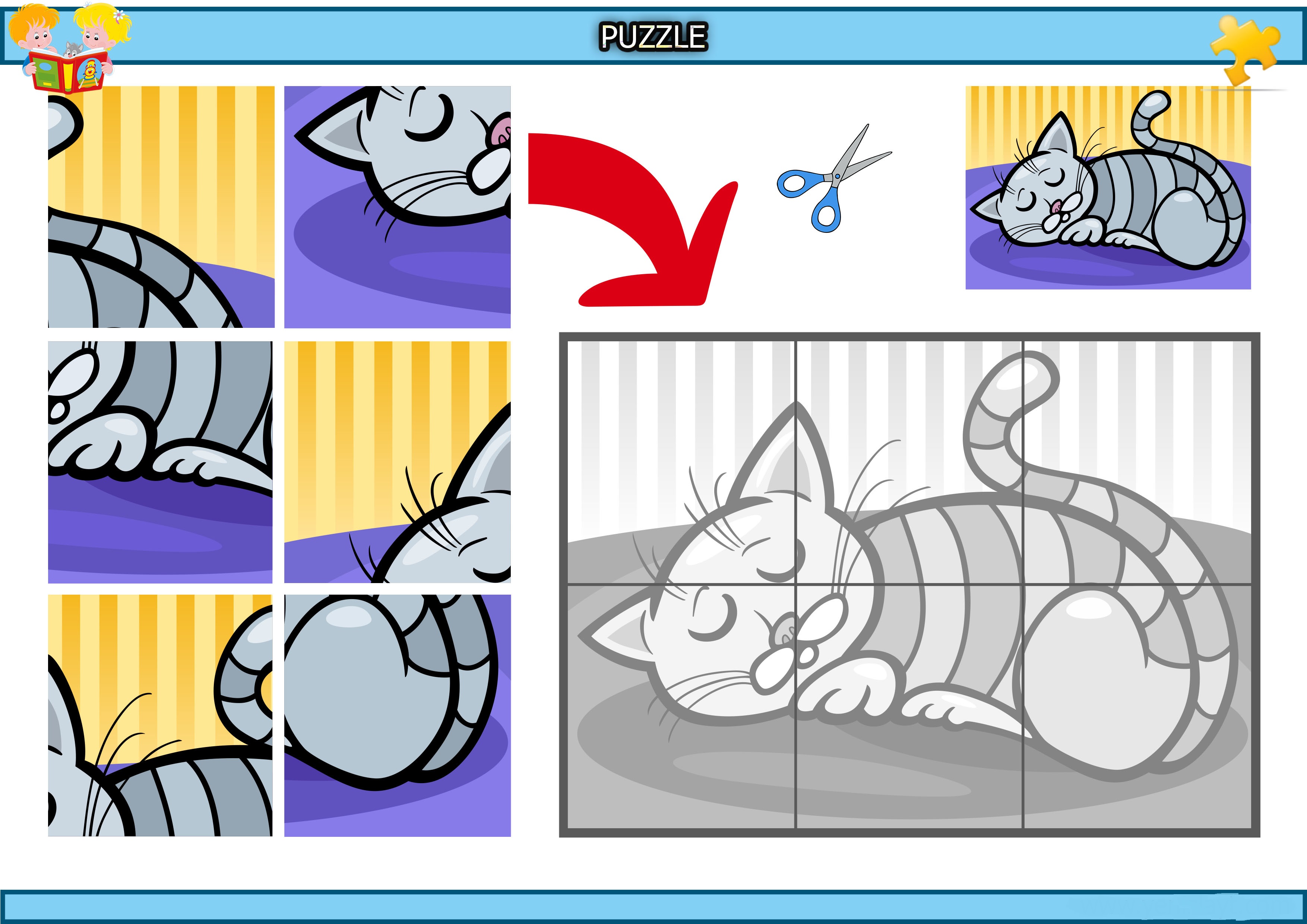 Kes yapıştır uyuyan kedi puzzle etkinlik