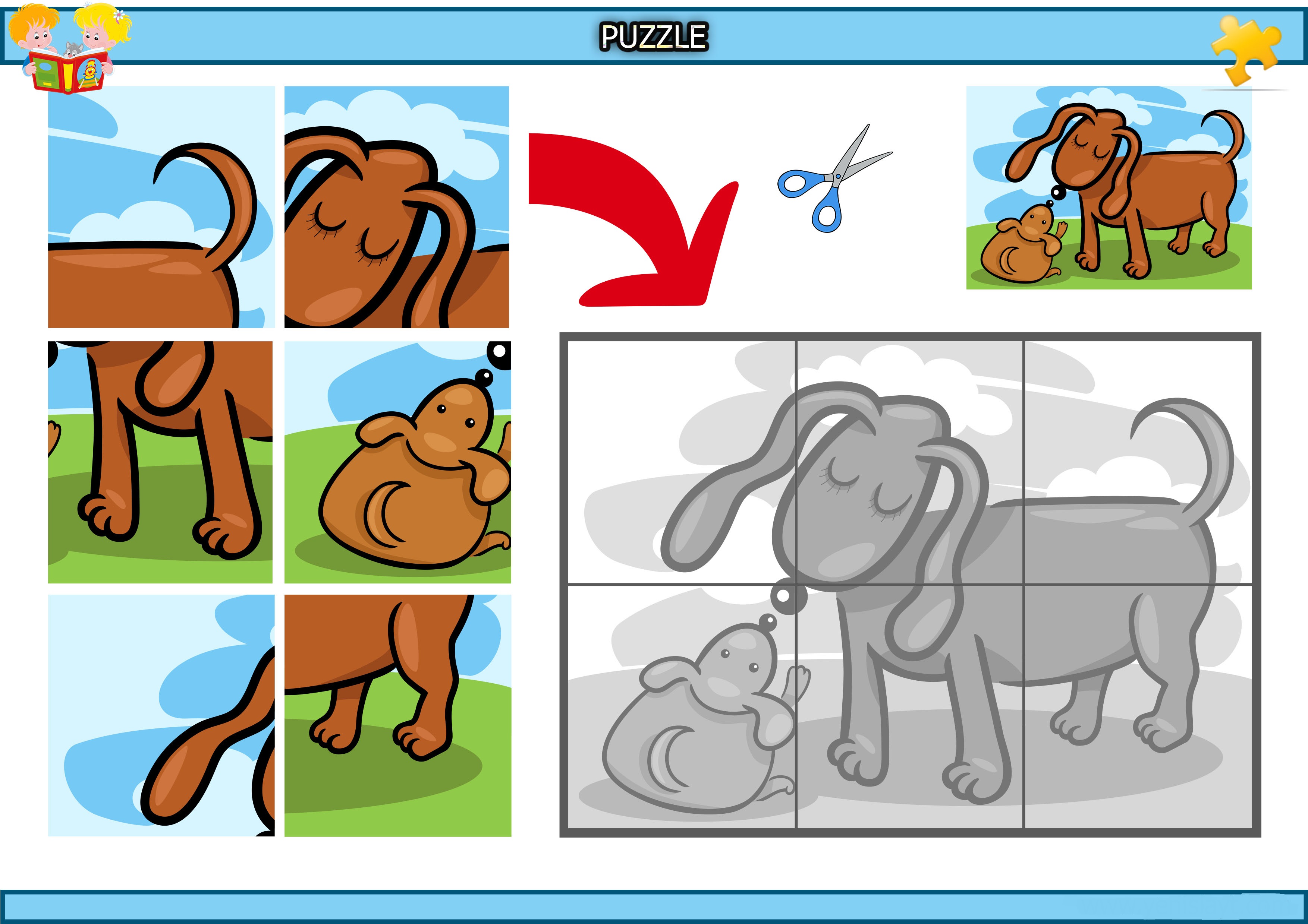 Kes yapıştır köpek ailesi puzzle etkinliğidir.