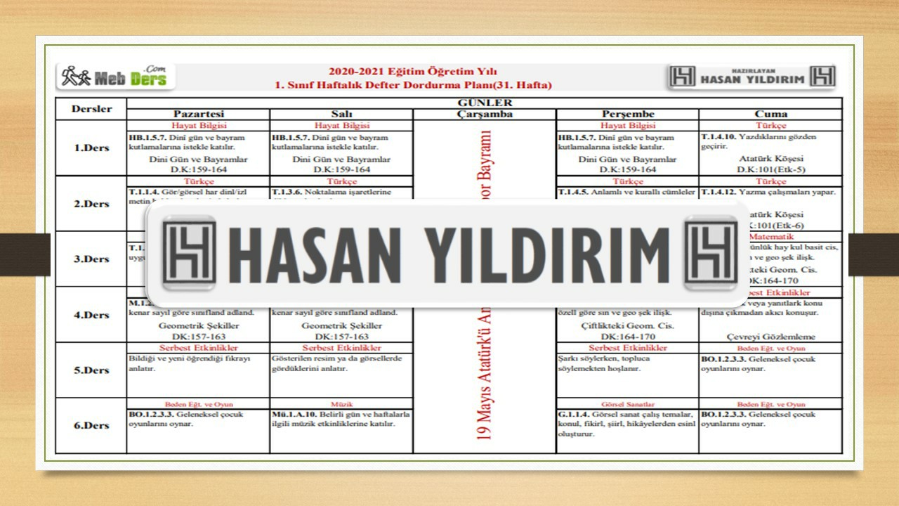 1.Sınıf 31.Hafta(17-21 Mayıs) Defter Dolum Planı