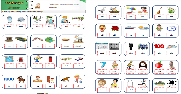 3.Sınıf Türkçe Eş Sesli (Sesteş) Sözcükler Görsel Etkinliği