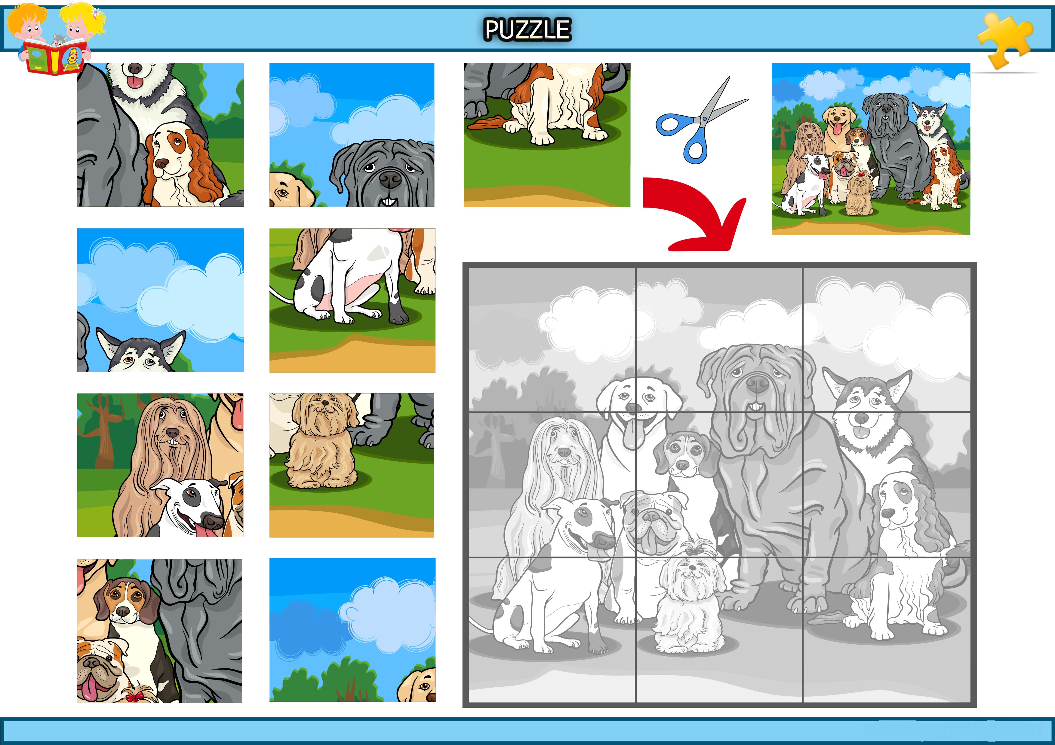 Kes yapıştır köpek topluluğu puzzle etkinliğidir.