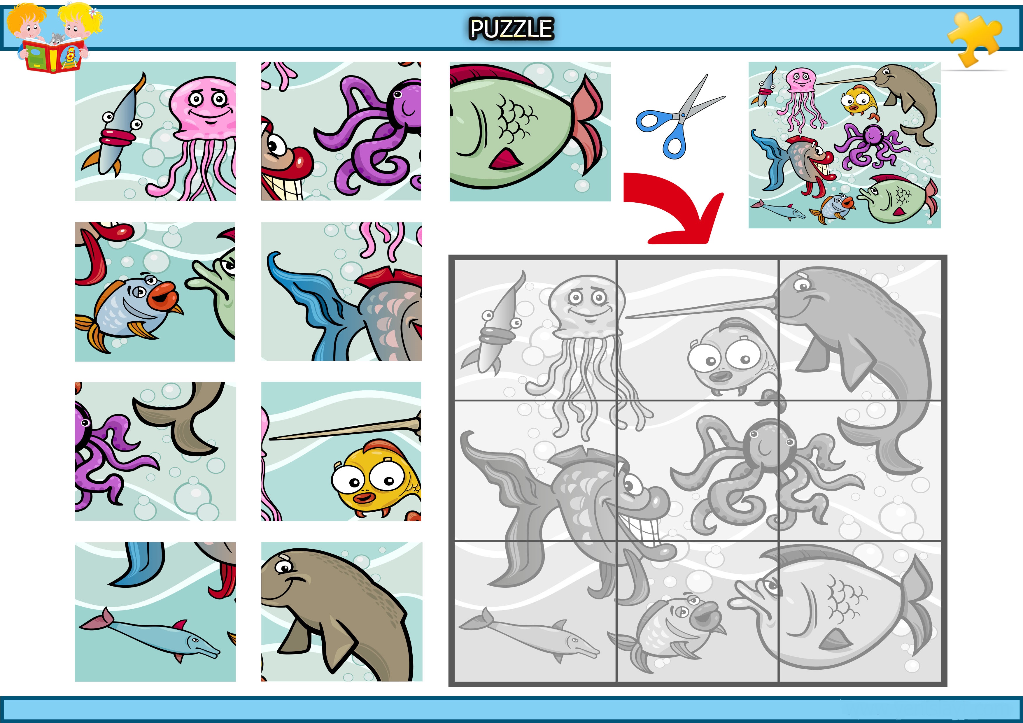 Kes yapıştır komik deniz canlıları puzzle etkinliğidir.