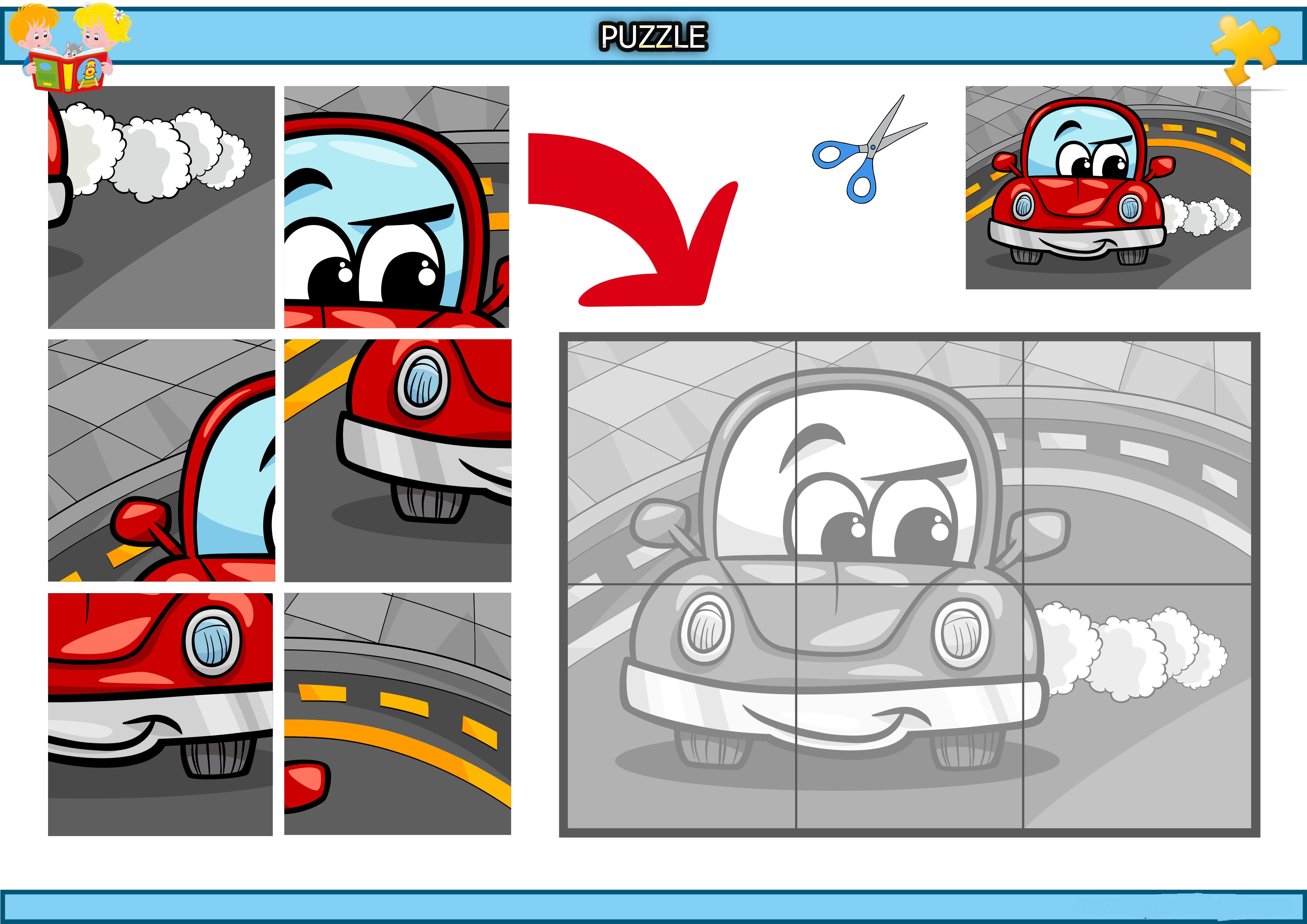 Kes yapıştır sevimli otomobil puzzle etkinliğidir.