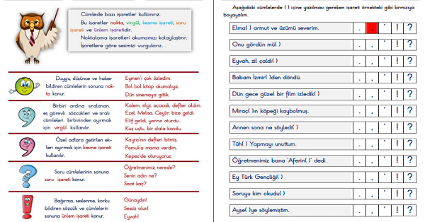 2.Sınıf Türkçe Noktalama İşaretleri Çalışma Sayfaları