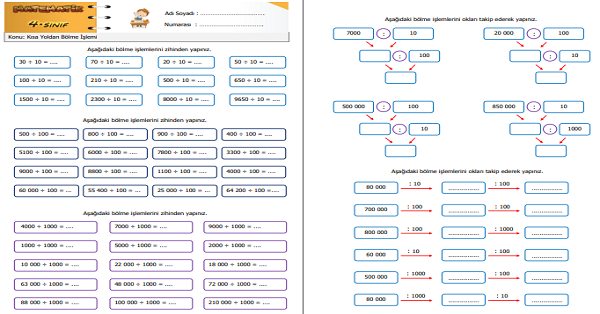 4.Sınıf Matematik Kısa Yoldan Bölme İşlemi Etkinliği