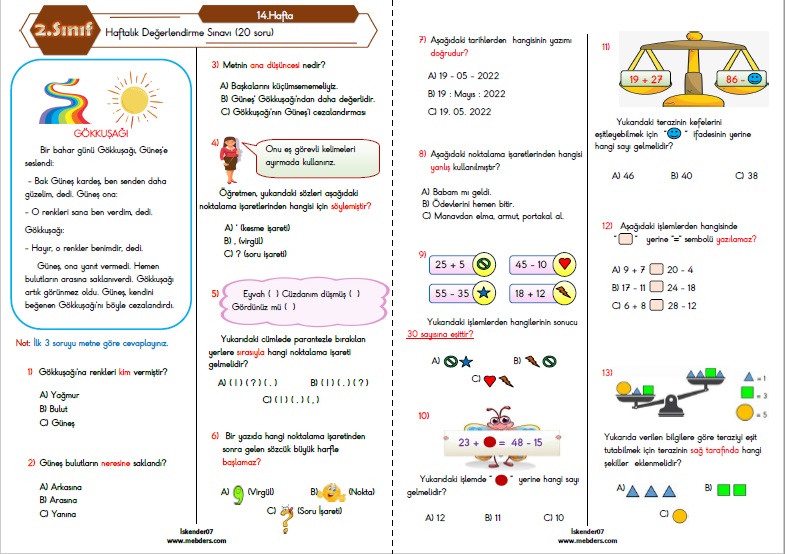 2.Sınıf Haftalık Değerlendirme Testi - 14.Hafta (13-17 Aralık)