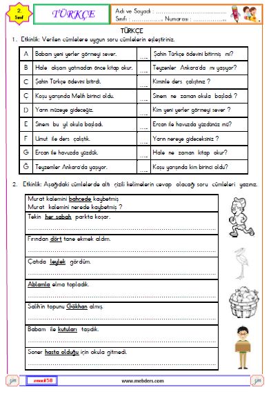 2. Sınıf Türkçe Soru Cümlesi Etkinliği