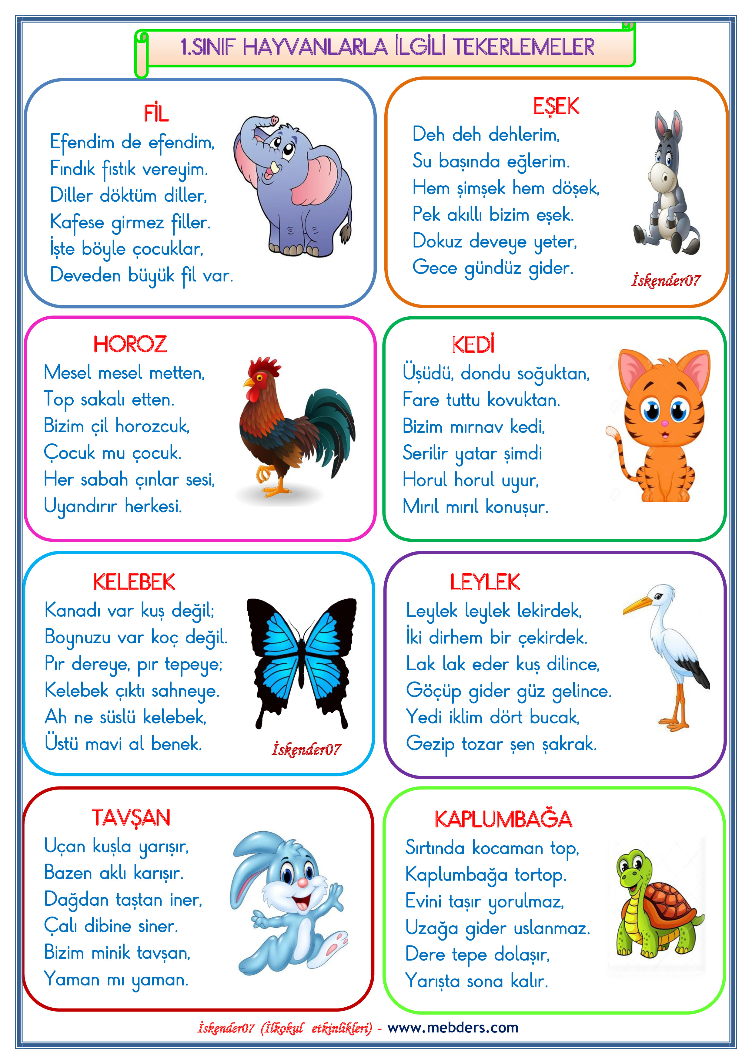1.Sınıf Hayvanlarla İlgili Tekerlemeler Etkinliği 3