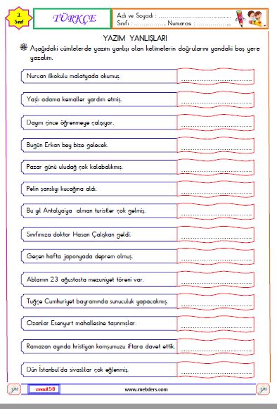 3.Sınıf Türkçe Yazım Yanlışları Etkinliği