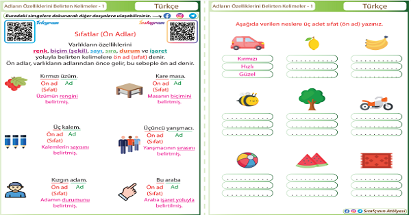 4.Sınıf Türkçe İsmi Niteleyen Kelimeler (Sıfatlar - Ön Ad) 1