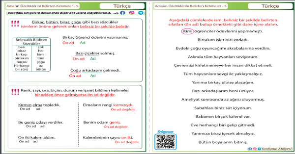 4.Sınıf Türkçe İsmi Niteleyen Kelimeler (Sıfatlar - Ön Ad) 2