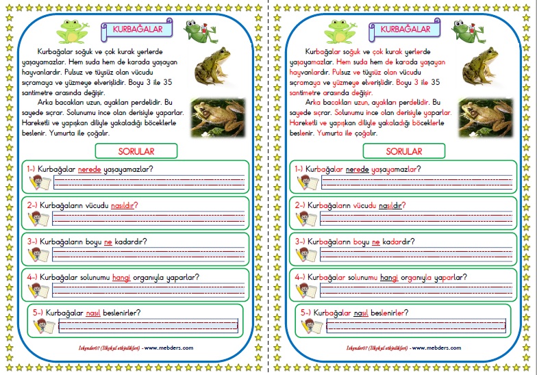 1.Sınıf Türkçe Kurbağalar Okuma Anlama Metin Çalışması 10