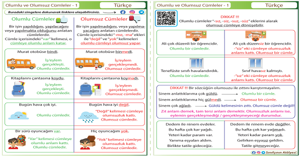 4.Sınıf Türkçe Olumlu-Olumsuz Cümleler Etkinliği