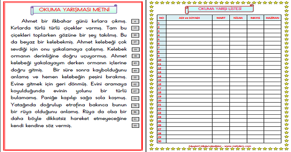 1.Sınıf Türkçe Okuma Yarışması Metni (Kelime Sayılı)
