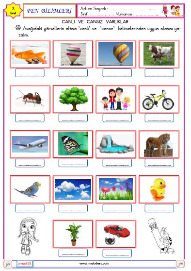 3. Sınıf Fen Bilimleri Canlı ve Cansız Varlıklar Etkinliği