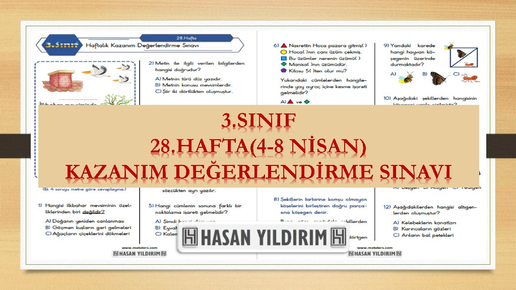 3.Sınıf Haftalık Değerlendirme Testi-28.Hafta(4-8 Nisan)