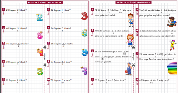 4.Sınıf Matematik Kesirlerle İlgili Problemler