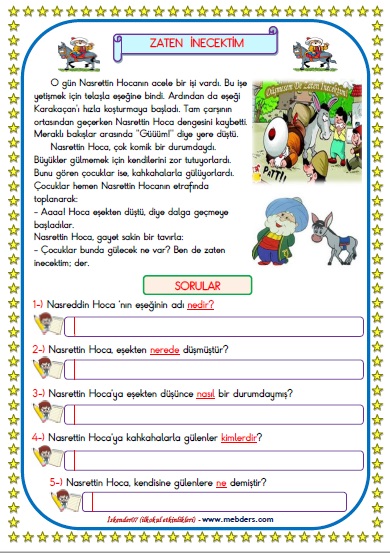 1.Sınıf Türkçe Zaten İnecektim Okuma Anlama Metin Çalışması 25