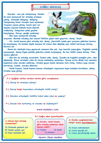2.Sınıf Türkçe Doğru Arkadaş Okuma Anlama Metin Çalışması 28
