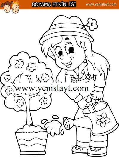 Çiçek sulayan çocuk boyama etkinliğidir.