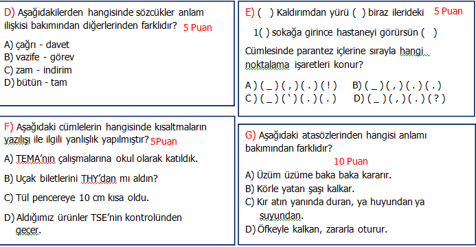 4.Sınıf Türkçe 2.Dönem 2.Yazılı Seviye 1