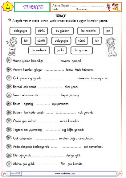 2. Sınıf Türkçe Sebep Sonuç Cümleleri Etkinliği