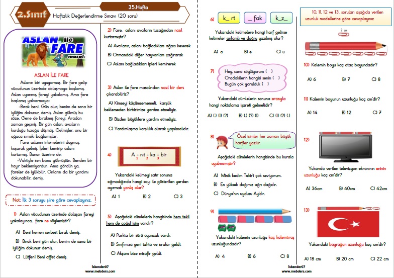 2.Sınıf Haftalık Değerlendirme Testi - 35.Hafta (30 Mayıs-03 Haziran)