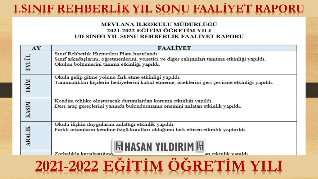 1.Sınıf Rehberlik Yıl Sonu Faaliyet Raporu