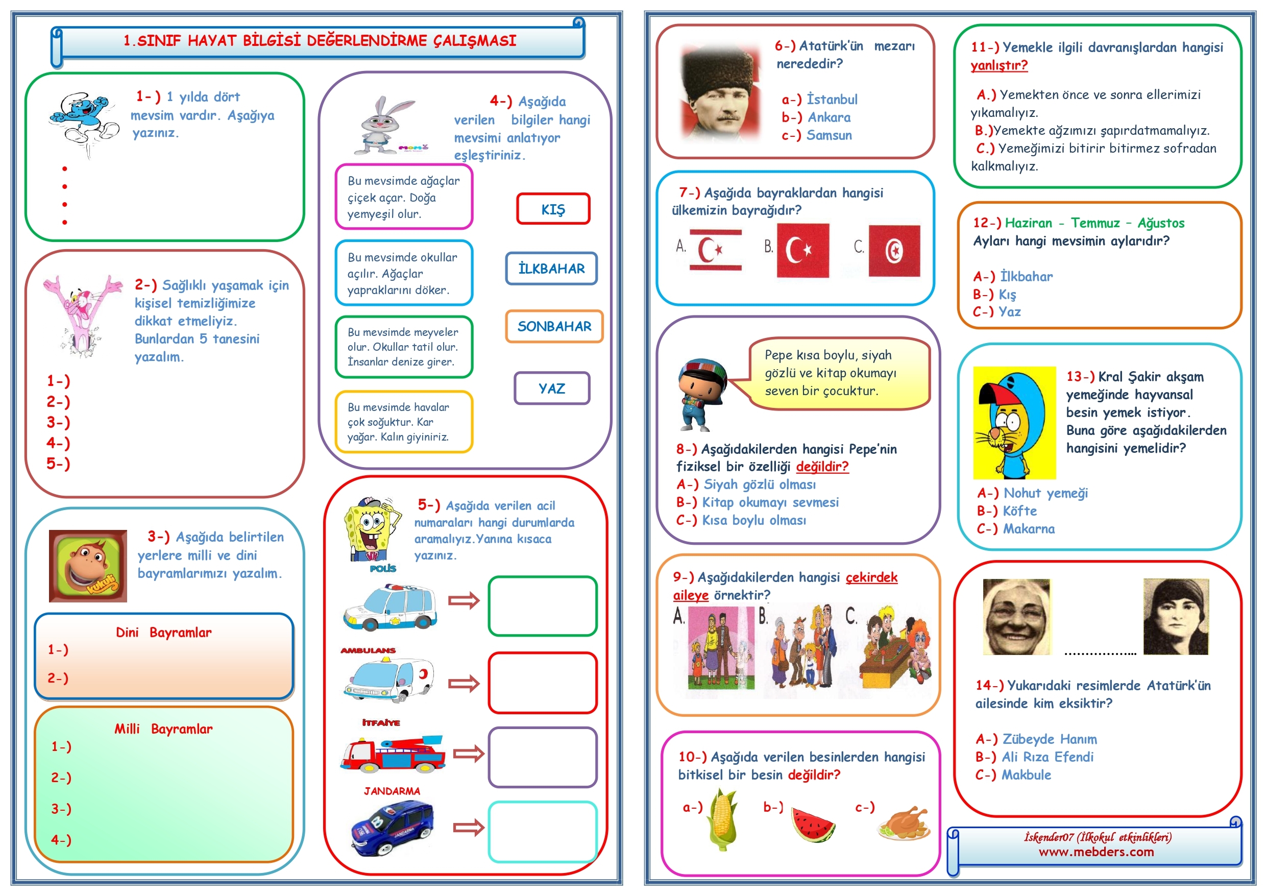 1.Sınıf Hayat Bilgisi Sene Sonu Değerlendirme Çalışması