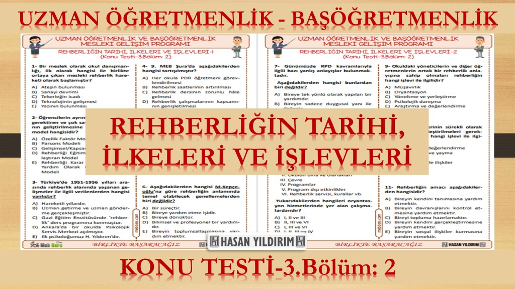 Rehberliğin Tarihi, İlkeleri ve İşlevleri (Konu Testi-3.Bölüm:2)