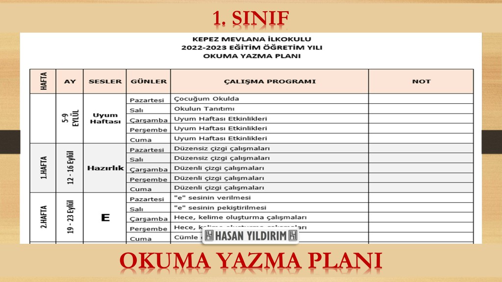 2022-2023 Eğitim Öğretim Yılı 1. Sınıf Okuma Yazma Planı