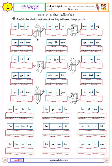 2. Sınıf Türkçe Kelimeleri Hecelerine Ayırma Etkinliği