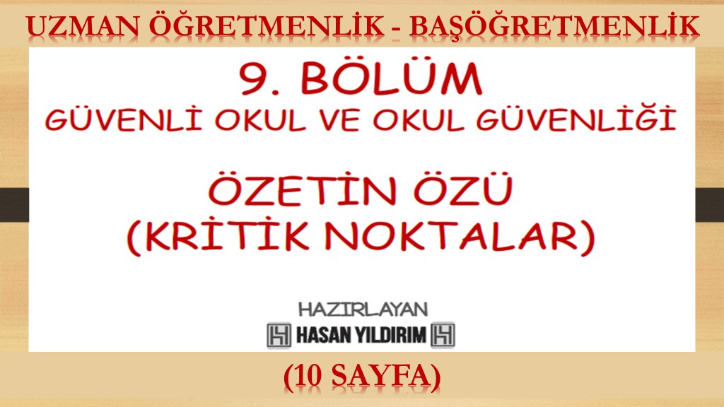 Uzman Öğretmenlik ve Başöğretmenlik Özetin Özü(Kritik Noktalar) - 9. Bölüm (Güvenli Okul ve Okul Güvenliği)