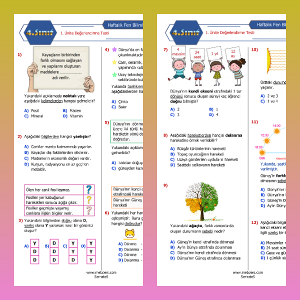 4.Sınıf Fen Bilimleri Ünite Değerlendirmeleri